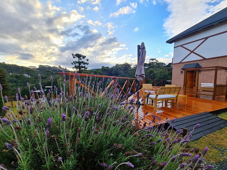 A vista da cabana é muito linda. Por diversas noites entramos na banheira de hidromassagem com a vista para a floresta. A vista do local em si para as montanhas é muito bonita. Recebemos visita de esquilinhos e passarinhos e só descobrimos essa possibilidade lá na cabana. Os proprietários são muito solícitos e educados, desde o começo. A cama é surreal de gostosa. Somos de Recife, então sentimos muito o frio, ainda mais nos dias de chuva, e já tinha lá duas mantas e um edredom. A cama é bastante espaçosa e a acomodação em si é muito aconchegante e romântica. A TV pega uns canais fechados e alguns streamings. Amamos toda a proposta do lugar. A área externa é muito linda e tem muitos lugares para aproveitar, um deck lindo, redes, lareiras, puffs, jardins... Os donos oferecem vários serviços para aproveitar a estadia... Kit cinema, kit lareira com mashmallows para assar na fogueira, kit piquinique, tem também serviços específicos para lua de mel, massagem com pedras aquecidas... Outra coisa que gostamos muito e nós surpreendeu positivamente foi o livro de guia do quarto, com as normas para usar lareira, hidro, wi-fi e o que mais gostamos, com dicas de restaurantes locais e de turismo... Os donos respondem muito rápido, e aconselham ligar ao mandar mensagem. Como moram no local e precisamos fazer o checkin e o checkout em horário incomum (na chegada pela manhã, reservando o dia anterior, e na saída de madrugada), foram flexíveis e isso nos agradou muito. Também ofereceram serviço de quarto já que ficamos 6 dias! Junto com a chave do chalé temos o controle do portão e isso é bem legal pq chegamos fora do horário de atendimento da recepção e podemos entrar e sair tranquilos.