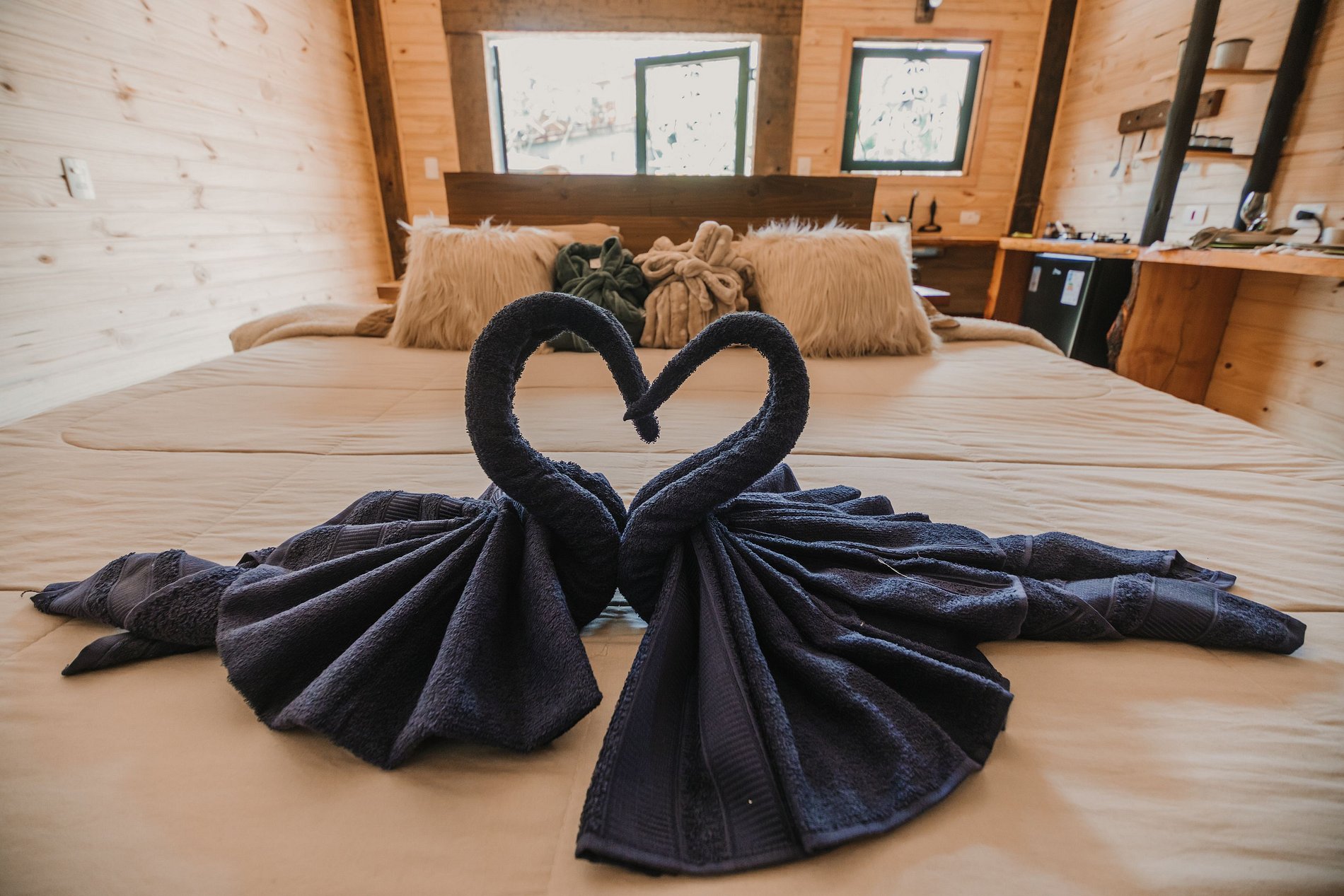 A acomodação tem uma cama bem confortável e consegue manter bem o calor internamente. O lugar é mais retirado do centro e proporciona uma ótima experiência para quem quer descansar longe de áreas urbanas