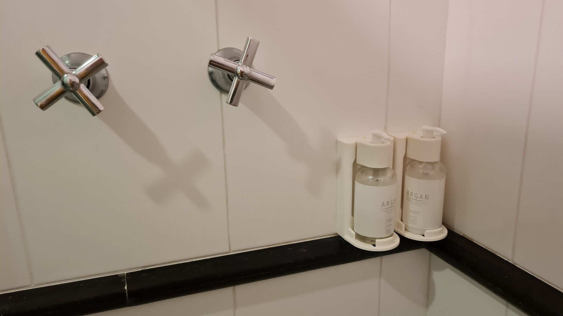 BANHEIROS: Shampoo e sabonete em dispense no chuveiro, sabonete líquido e papel higiênico.