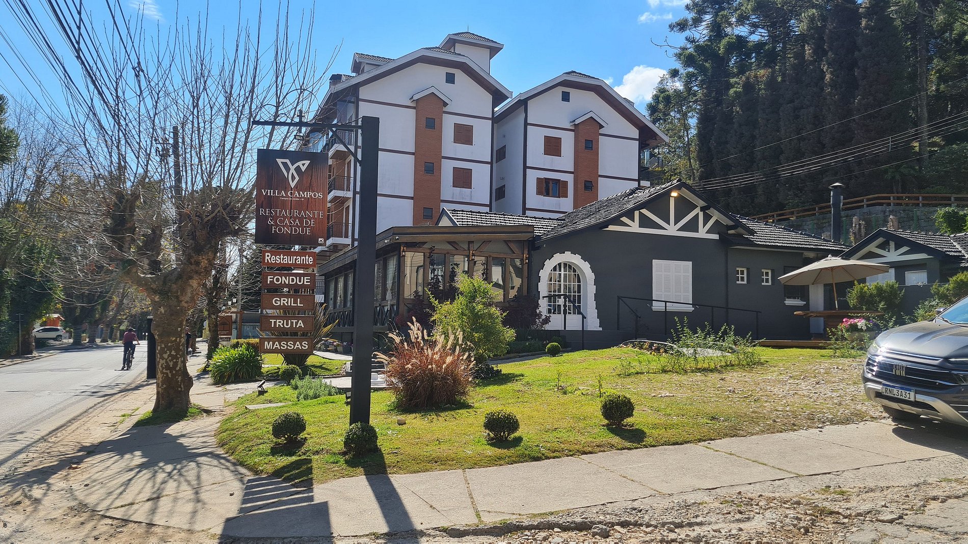 Com uma linda arquitetura que lembra os castelos da França, estamos localizados a menos de 1 km do centro turístico de Campos do Jordão, o famoso "Capivari" em uma avenida principal toda asfaltada e iluminada.