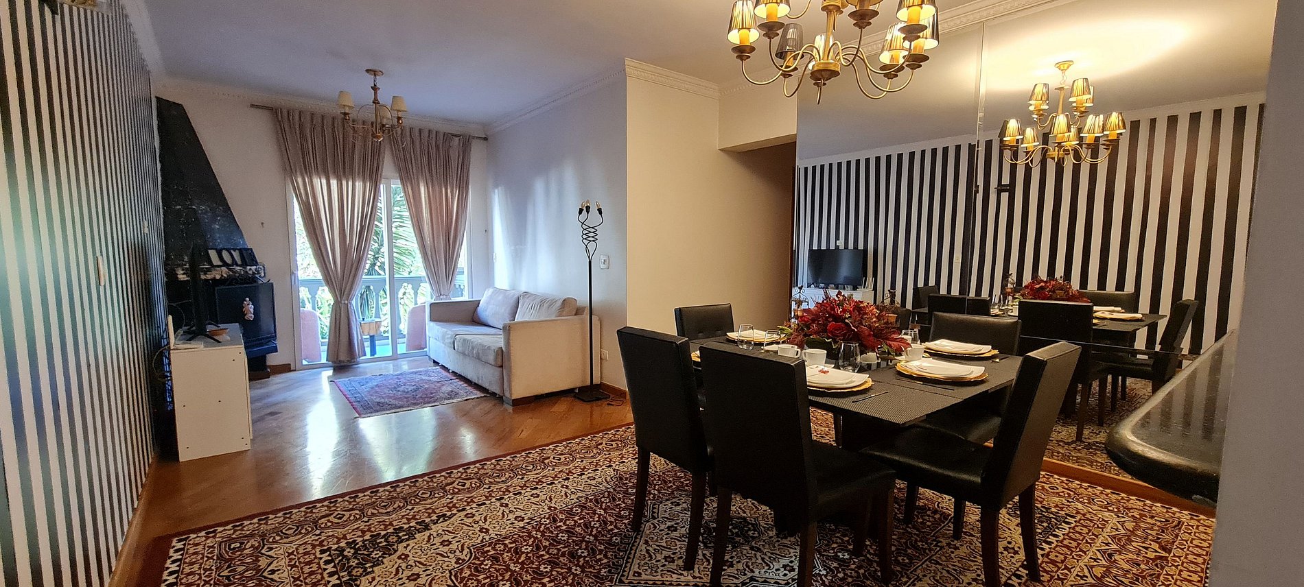 - 1 mesa de jantar com 8 cadeiras;