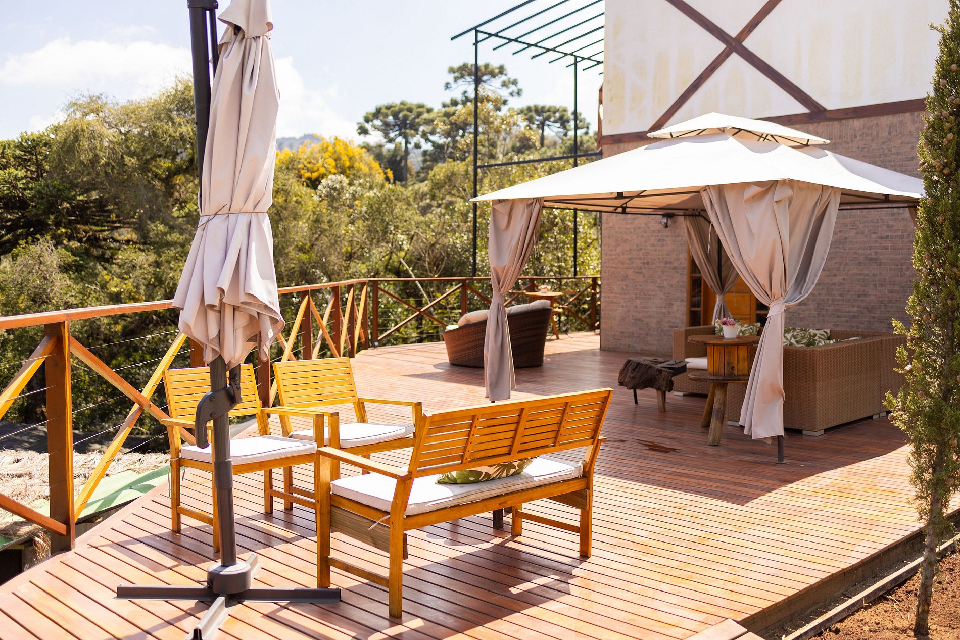 ESPAÇOS COMPARTILHADOS• Deck com vista para o vale, ideal para apreciar o pôr do sol, tomar um vinho, ler, degustar um café ou simplesmente relaxar; • Sofás, mesas e cadeiras para lanches e piqueniques; • Espaço com redes de descanso; • Sala de massagem e terapia (serviço opcional); • Fontes de água; • Espaços para fogo de chão; • Estacionamento interno e gratuito; • Espaço gourmet com fogão a lenha, churrasqueira, mesa e cozinha (consultar disponibilidade e valor).