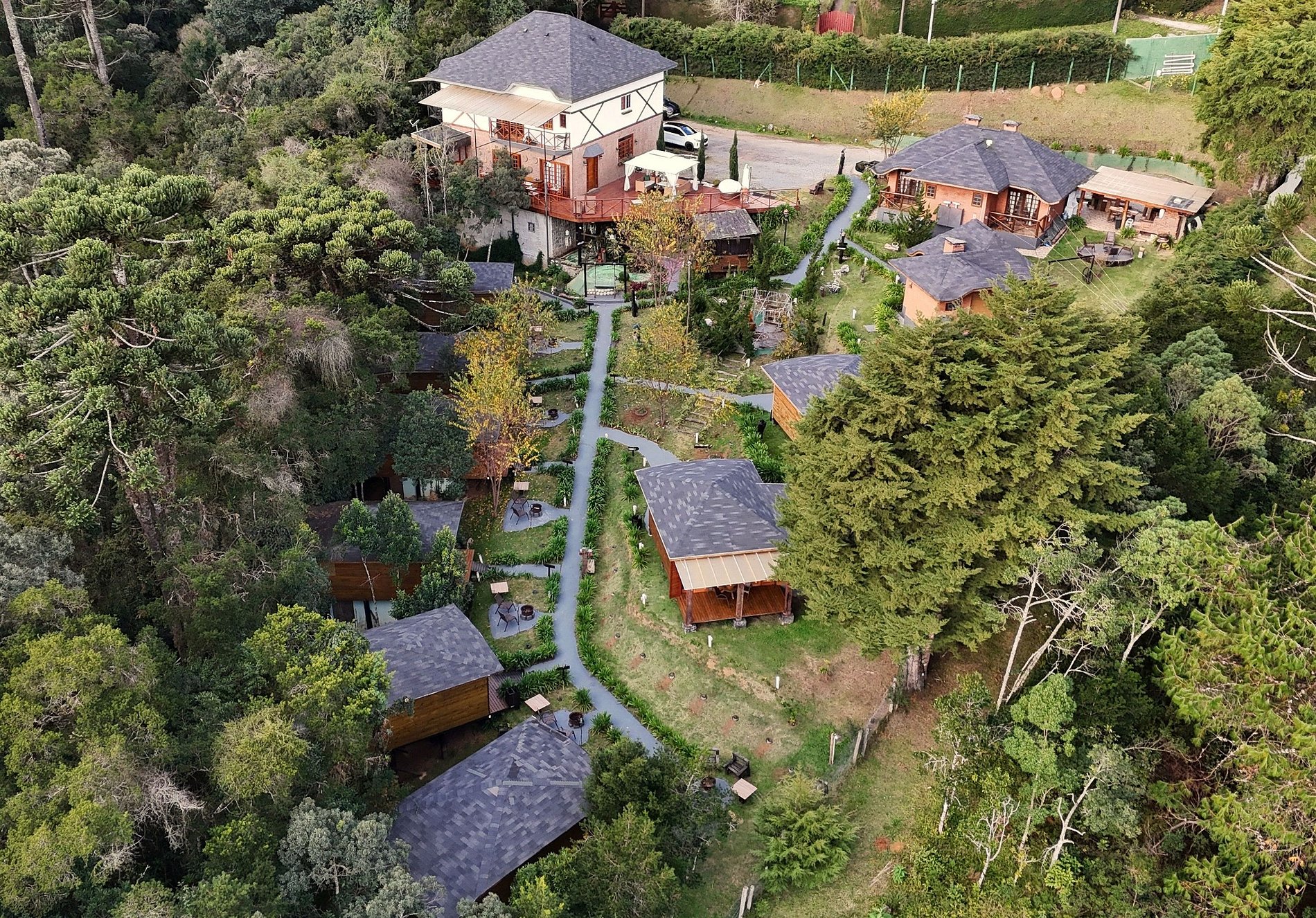 "Aninhado em meio à mata nativa e jardins exuberantes, nosso refúgio oferece o cenário perfeito para quem busca reconexão. É um convite ao romance, um santuário para a alma que anseia por desacelerar e se alinhar com o essencial: a serenidade da natureza e a paz interior. Nossas cabanas e chalés, concebidos como uma charmosa vila de conto de fadas, harmonizam o conforto contemporâneo e a total privacidade. Cada janela emoldura uma vista privilegiada para o verde, onde a arquitetura rústica se entrelaça com toques modernos. Cada detalhe foi meticulosamente planejado para tecer uma experiência única e acolhedora, um verdadeiro abraço ao hóspede. Ao cair da noite, sob um dossel de estrelas intocado pela poluição luminosa das cidades, a magia acontece. Acenda um fogo de chão, saboreie um vinho encorpado e compartilhe marshmallows, criando memórias sob a luz prateada do luar. Dispomos de 14 acomodações exclusivas, cada uma com sua própria personalidade. Convidamos você a descobrir qual delas ressoa com o seu desejo de fuga. Reserve sua estadia e redescubra o prazer de se desconectar da rotina. Encontre o seu equilíbrio em meio ao verde, às estrelas cadentes e ao silêncio que só este local pode oferecer."